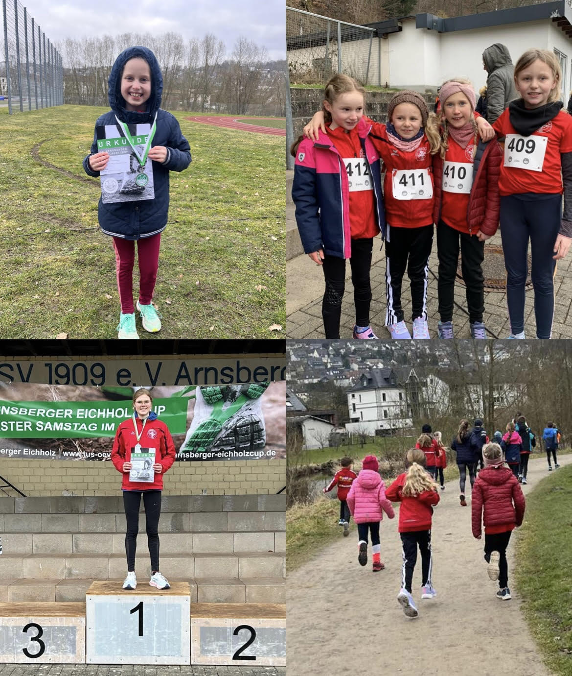 welche den 1. Platz und 3. Platz in ihrer Altersklasse über die 5,6km lange Strecke erreichten. In den anschließenden Läufen über 1,1km rund um den Arnsberger Eichholzsportplatz siegten Mika Bornemann (M8)