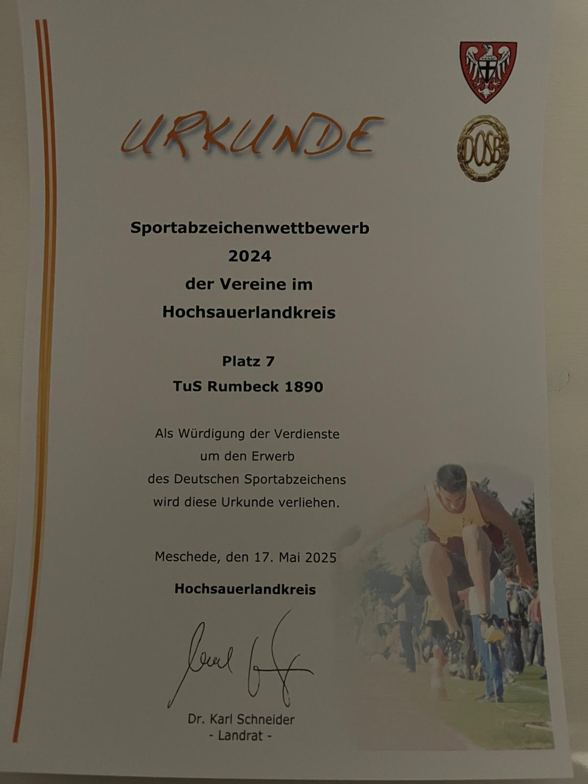 Sportabzeichenwettbewerb 2024 - TuS Rumbeck in den Top Ten